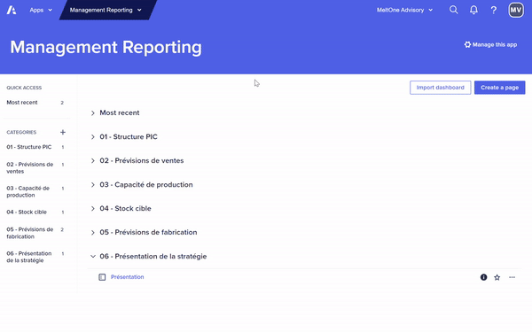 Intégrée directement dans la partie App de votre Workspace Anaplan,